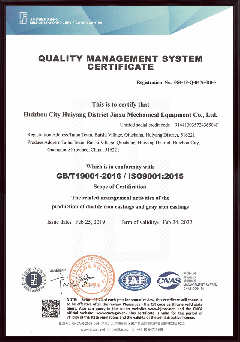 惠州市惠陽(yáng)區(qū)金旭機(jī)械設(shè)備有限公司(原名深圳金泉鑄造廠(chǎng)),始建于1992年2月,公司坐落于惠州市惠陽(yáng)區(qū)秋長(zhǎng)白石大湖工業(yè)區(qū),是一家集模型、鑄造、機(jī)械加工于一體的綜合型企業(yè),主要生產(chǎn)高強(qiáng)度高韌性球墨鑄鐵、灰鑄鐵及鑄銅、鑄鋁等各種材質(zhì)及牌號(hào)鑄件。